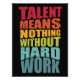 En djärv och inspirerande motiverande typografidesign med den kraftfulla frasen ”Talent Means Nothing Without Hard Work.” Stiliserad med en retro vintage-estetik använder konstverket slitna texturer och levande övergångsfärger från rött till teal, vilket skapar en stark visuell effekt mot en mörk bakgrund. Perfekt för produkter som trycks på beställning, såsom t-shirts, huvar, affischer och väggkonst, tilltalar denna design entreprenörer, idrottare, studenter och alla som drivs av disciplin, flit och en framgångsrik mentalitet.
