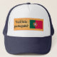 "Você fala português?" - "Talar du portugisiska?" på portugisiska. Detta frågar människor om de talar samma språk som ni. Portugal flagga på orange karta. Svart teckensnitt.