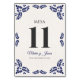 Talavera Blue Floral Minimalist Spanish Wedding Bordsnummer