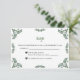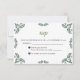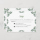 This Talavera Green Floral Minimalist Spanish Wedding RSVP Card design features a minimalist approach with delicate, symmetrical green floral motifs placed in each corner and along the edges. The small, leaf-like shapes create a sense of movement while maintaining an airy, open space in the center, allowing for ample text placement. The simplicity and elegance of the pattern evoke traditional Talavera tiles, giving the design a classic Mexican artisanal feel.