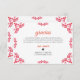 Denna design för tackkort till spanskt bröllop med Talavera Orange Floral Minimalist har ett minimalistiskt tillvägagångssätt med ömtåliga, symmetriska orange blomsterformade mönster placerade i varje hörn och längs kanterna. De små, bladliknande formerna skapar en känsla av rörelse samtidigt som de bibehåller ett luftigt, öppet utrymme i mitten, vilket möjliggör riklig textplacering. Mönstrets enkelhet och elegans frammanar traditionella Talavera-kakelplattor, vilket ger designen en klassisk mexikansk hantverkskänsla.