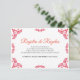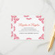 Denna Talavera Orange Blommig Minimalistisk Spansk Bröllopsföljekortdesign har ett minimalistiskt tillvägagångssätt med ömtåliga, symmetriska orangefärgade blommotiv placerade i varje hörn och längs kanterna. De små, bladliknande formerna skapar en känsla av rörelse samtidigt som de bibehåller ett luftigt, öppet utrymme i mitten, vilket möjliggör riklig textplacering. Mönstrets enkelhet och elegans frammanar traditionella Talavera-kakelplattor, vilket ger designen en klassisk mexikansk hantverkskänsla.