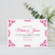 This Talavera Pink Floral Minimalist Spanish Wedding Save the Date design features a minimalist approach with delicate, symmetrical pink floral motifs placed in each corner and along the edges. The small, leaf-like shapes create a sense of movement while maintaining an airy, open space in the center, allowing for ample text placement. The simplicity and elegance of the pattern evoke traditional Talavera tiles, giving the design a classic Mexican artisanal feel.