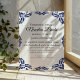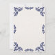 Denna svarta blomstermönster i minimalistisk stil på bröllopsinbjudan i Talavera-stil har ett minimalistiskt formspråk med ömtåliga, symmetriska svarta blomsterornament placerade i varje hörn och längs kanterna. De små, bladliknande formerna ger en känsla av rörelse samtidigt som de bevarar ett luftigt och öppet utrymme i mitten, vilket möjliggör riklig textplacering. Mönstrets enkelhet och elegans frammanar traditionella Talavera-kakelplattor och ger designen en klassisk, hantverksmässig mexikansk känsla.