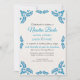Denna Talavera turkosa blomster minimalistiska spanska bröllopsinbjudan design har ett minimalistiskt tillvägagångssätt med ömtåliga, symmetriska turkosa blomster motiv placerade i varje hörn och längs kanterna. De små, bladliknande formerna skapar en känsla av rörelse samtidigt som de bibehåller ett luftigt, öppet utrymme i mitten, vilket möjliggör riklig textplacering. Mönstrets enkelhet och elegans frammanar traditionella Talavera-kakelplattor, vilket ger designen en klassisk mexikansk hantverkskänsla.