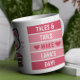 Tales & Svan Mugg blandar lekfull design med personliga beröringspunkter, med en söt illustrerad katt som genomsyras av en stapel av bokar bredvid frasen "Tales & Svan make My Day", som är inramad av tass avtryck och hjärtan. Denna mysiga och kreativ utformning är perfekt för alla som kärlek sina sällskapsdjur lika mycket som deras bokar, och ger utrymme för att lägga till ett budskap om anpassningsbar. Vare sig det används för morgonkaffe eller kvällstek ger det lite extra glädje till dagliga rutiner och ger en tankfull gåva till bok och djur älskare som uppskattar en blandning av charm och känslor i sina vardagsföremål.