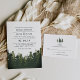 Hunter grönt och vit OSA kort matchar vår rustiska chic Tall Tallar bröllop och händelserbjudanden, och har silhuetterad gräs träd i rökig marin och blå grått. Anpassa till önskat datum för OSA.