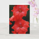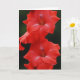 Originalfotografi av vackra röda slår tonade Gladiolus-blommor porträtt. Kortet är tomt och kan användas för alla tillfälle. Du kan lägga till text som du vill eller lämna som den är! Gladiolus-blommorna finns i en släkt av fleråriga kormväxter och finns i familjen Iris av blommor. Iridaceae är namn. De kallas också Sword Lily och växer från lökar som planterats i Vår. De har sitt ursprung i södra Afrikan och växer lätt i Förenta staterna.