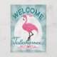 Tallahassee Florida rosa flamingo. I vintage resor poster stil, står det "Välkommen till Tallahassee, Florida" i turkos av rosa, vit och mynt grönt.
