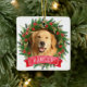 Denna söta dekoration skulle se så söt ut på din julgran! Med sin vackra krans med gyllene blad och röda dekorationer, och röd banderoll med din hunds namn skulle det vara ett bra tillskott! Det gör också en underbar present till hundälskare i ditt liv.