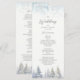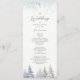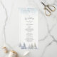 Guida dina gäster genom din ceremoni med detta eleganta vinterbröllopsprogram. Designat med mjuka akvatell-tallträd, ömtåliga snöflingaccents och en ren layout, ger denna design rustik charm och säsongsbetonad frid till din fest. Perfekt för berg-, skogs- eller decemberbröllop.