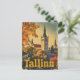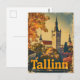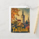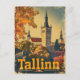 En förtjusande bild av Tallinn, Estlands huvudstad, som belyser dess medeltida charm och historiska arkitektur. Konstruktionen har stenmurar, urgamla stadsmurar och den gamla stadens ikoniska spirer, som alla återges i en nostalgisk vintage stil. Denna teckning fångar Tallinns tidlösa skönhet och kulturella rikedom och uppmanar tittarna att utforska sitt härjade förflutna.