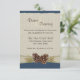 Tallar kottar och ljust jute vinter marinblå skog bröllopsmottagning kort för att komplettera inbjudningar. Alla delar av denna inbjudan är tryckta, det finns ingen riktig jute eller tallkottar bifogad.