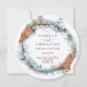 Tallrik bröllops krans med gröna barr, kottar och inbjudningar
