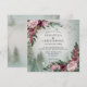 Tallskog Dammtrosa akvarellbröllopsinbjudan har en skogig ständigt grön bakgrund med accentuerande hörnramar av burgunderröda och dammtrosa blommor, tallkottar, tall och ormbunksaccent. Scenen kompletteras med en flock fåglar som flyger över himlen. En blandning av modern typografi fullbordar inbjudan. Redigera texten, använd bara personaliseringsalternativet och gör den till din egen. Baksidan av kortet har också en romantisk akvarellskogs-bakgrund för brudens och brudgummens monogram. Designad av bröllopsartisten Nancy Lambert. Skicka mig ett meddelande för anpassade variationer. Denna vackra lantliga inbjudan och andra bröllopsdetaljer är en del av vår RUSTIK TALLSKOG BURG
