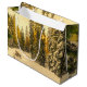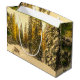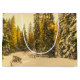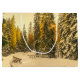 Stor presentpåse med ett vackert naturfoto. En isolerad vinterstig med höga snötäckta tallar.