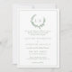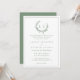 Elegant och klassisk monogram talltäljungskrans sagegrön vinterbröllopsinbjudan.