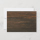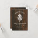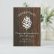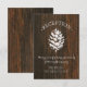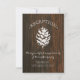 Ett rustikt och elegant bröllopsmottagningskort med en illustration av en vit talltopp över en mörk lada trä inspirerad bakgrund.