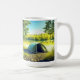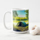 Söt ai-konst som skildrar ett tält i ett fredligt skogen som ligger nära sjö.