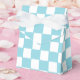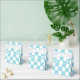 Tält i Robin Egg-blå färg med vitt fyrkantigt möns Presentaskar