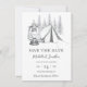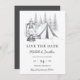 Camping i tält, Lantern och Woodland Sketch Sparar datummeddelandet Bröllop i Grått och Vit. - av MI Bröllop-design