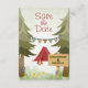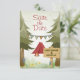 Unikt campingtillägg Skogsutflykt Spara datum Bröllopsinbjudan med tält, lägereld, träd och blommor. -