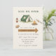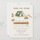 Vattenfärg illustrerad rustik camping tema födelsedagsfest inbjudan förbjuder med lägereld, tält och smörgåstårta,