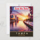 Tampa save the date bröllopsinbjudan, resebrevkortsdesign. Solnedgång över stadens strandpromenad.
