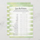Njut av att spela denna gissning. Features babyduschspel på mjuk, grönt och vit rand bakgrund. Cute, tan, kanin på baksidan med mallar skapat för dig.