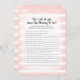 Njut av att spela den här Vem känner till Mamma-to-Be-Best? babyduschspel på mjuk, rosa och vit rand-bakgrund. Cute, tan, kanin på baksidan med mallar skapat för dig.