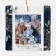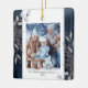 Den här fotojulprydnaden mutade vintern blad med grått och vattenfärg på mörk blått bakgrund. Anpassa den här elegantens julprydnad med ditt familjefoto.