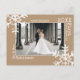 Anpassa det här fotokortet med ett foto från bröllop eller ett foto av dig och din nya make eller fru som njuter av livet tillsammans. Det här kortet har ett snöflingor med problem och ett skrivskrivarteckensnitt.