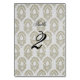 Bordnummerkort med vacker tan och vit blocktryckt mönster. Dubbelsidig.
