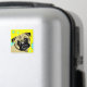 Modern Pug-konst på gul bakgrund med akvatiska färgcirklar