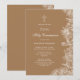 Tan White Blommigt First Heliga Communion Inbjudningar