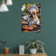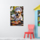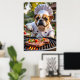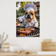 Den här snygga bilden har en brun och vit Fransk Bulldog, som bär en vit kock med hatt och apron och som omsorgsfullt griper ett biet i kött på ett utomhusgrat. Med fokuserat ögon och en spatel i tass tenderar det vackra hund på ett skickligt sätt att sizzla-stek, som är täckt med små tomater och örter. Den pulserande utomhusinställningen med varmt solljus fullbordar denna charmerande kulinariska scen.