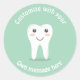 Tecknad som leker tand på runda klistermärken till anpassningsbar med din egen text.