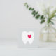 Kvadrera tand- visitkortar som presenterar en vittand med en röd hjärta på ett ljust - grå bakgrund. På baksidaen är betitlar mallfält för ditt namn,/företagsnamn/specialty och information om kontakt.