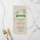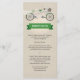 Cykeltemat bröllop är en roligt i bröllop. På detta faux linen-kort på bröllop-menyn symboliserar en tandem-cykel det gifta paret som ska rida av tillsammans. Brödets säte har en bröllop-slöja inlindad runt den och brudgummens säte har en obunden bågslips inlindad runt handlebarna. En möhippa bukett placeras i cykelns basket. Menyns titel visas i en banderoll under cykeln med grönten tryckt under. Parets namn och händelsens datum skrivs ut i en grönt på baksidan. Tillgänglig med matchande produkter med ett alternativ för brud- och brudgummens cykel.