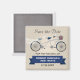 Cykel bröllop är en roligt i bröllop. På denna faux linen bakgrund spara datum magneter symboliserar en tandemcykel med marinblå accenter det gifta par som ska gifta sig. Björnens säte har en bröllop-slöja på det. Groomens har en obunden bukett inlindad runt handlebarna med möhippan bouquet i cykelns basket. Parets namn står i en blå banderoll nedanför. Perfekt för ett cykeltema eller bröllop utomhus. Finns i alternativt färg med ett separat tvåcykelalternativ.