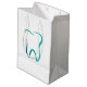Presentpåse med en illustration av en tand. Ritad med en grön gradientkontur.