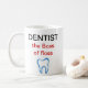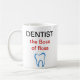 Tandläkaretemakaffe koppar med tandsymbol och den roliga ordstävtandläkaren chefen av floss. Designat som en gåva eller gaggåvan för en tandläkare, en tand- assistent eller en befordrings- gåva för tandläkarekontor.