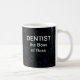 Tandläkaretemakaffe koppar med tandsymboler all över koppen i ett mönster och rolig ordstävtandläkare chefen av floss. Designat som en gåva eller gaggåvan för en tandläkare, en tand- assistent eller en befordrings- gåva för tandläkarekontor.