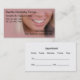 Tand- visitkortar med avbildar av ett leende i bakgrunds- och textorienteringen som du kan skräddarsy on-line, däribland ett möte kort på baksidaen. Designat för en tandläkare, en muntlig kirurg eller teman förband till tandproteser och implantat.