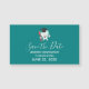 Studenten spara datum magneter med en illustration av en stor vit tandtand i tecknad som leker glatt med en röd tandborste och ge tummarna upp. Tand bär en svart studentmössa. Gröntens bakgrund.