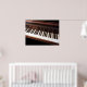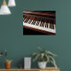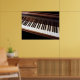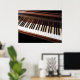 Denna poster ligger nära tangentbord i ett stort piano. Den högpolerade undersidan av locket avspeglar det svarta och vita i nycklar skapar ett vackert mönster. Du vill sätta dig ner och börja spela.