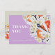 Tack för elegant och chic med ett vackert blomstrande tangerin grenar. Blommigt botaniskt kort med vår delikat blomma och citrusfrukter. Orange, pastel och lilac färg. Anpassa med namnen.