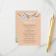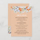 Kortet för elegant och chic bröllop med vackert blåsande tangerin grenar. Blommigt botaniskt kort med vår delikat blomma och citrusfrukter på bakgrunden till pastellorangen. Anpassa med texten.