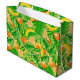Tropiskt mönster som består av löv, bananer och tangeriner.