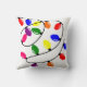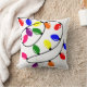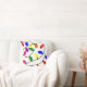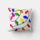 I dekorativ kudde har vi en juldesign av ljus i rött, blått, gult, grönt, rosa och lila.
